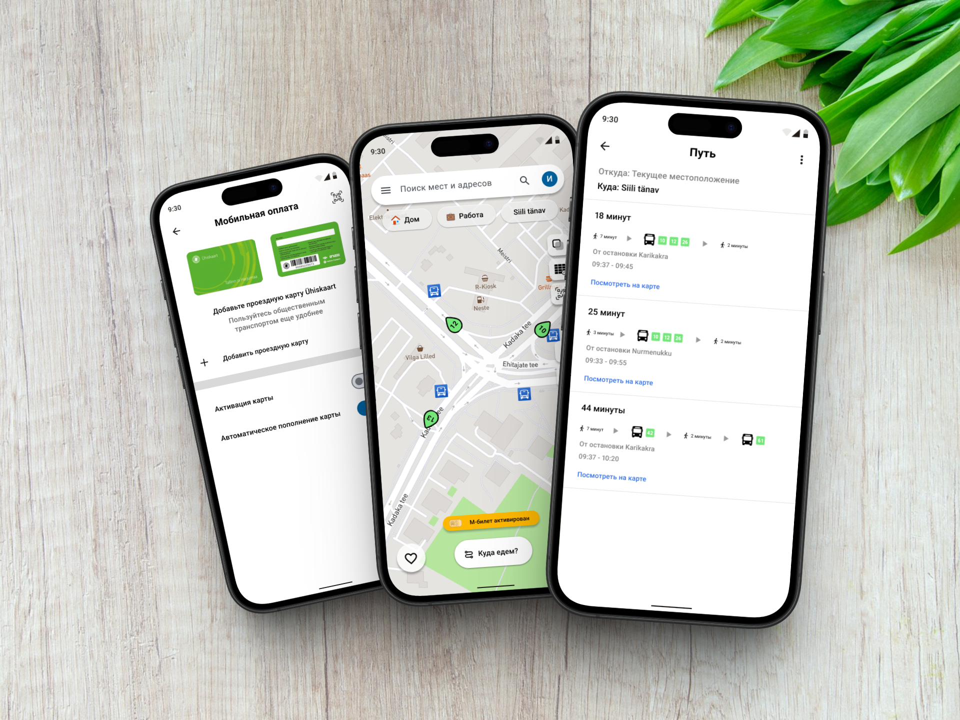 A high-fidelity prototype designed in Figma for planning routes, tracking public transport, and managing travel cards.