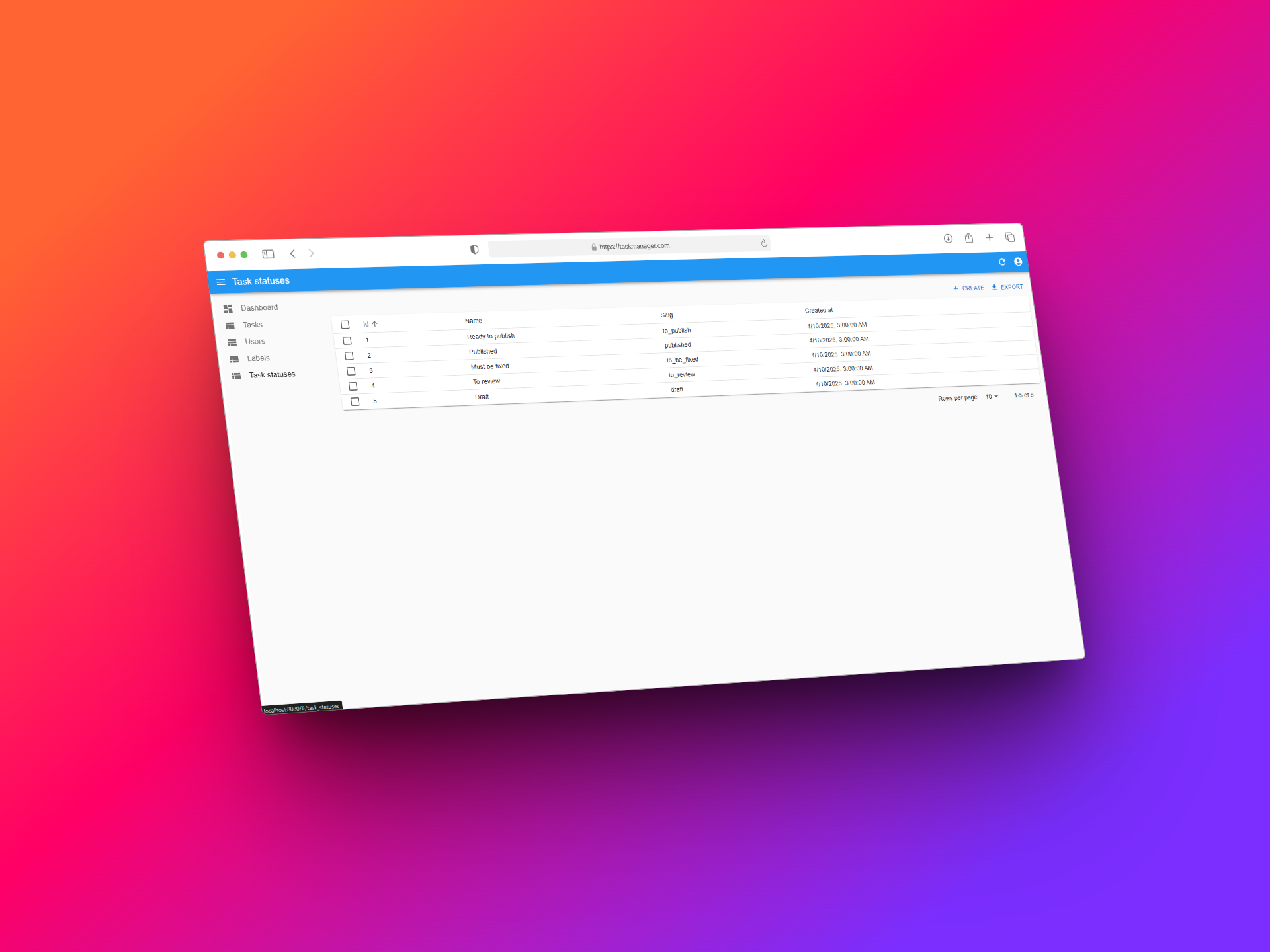 A full-stack task management web application with role-based access control and CRUD features.